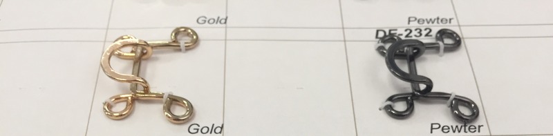 Товар Крючки DF 232 (артикул DF 232) — качественная фурнитура из категории Крючки, предназначенная для надежного крепления элементов одежды, аксессуаров и создания регулируемых соединений. Изготовленные из прочных материалов, таких как металл или пластик, эти крючки обеспечивают долговечность и удобство в швейном производстве, подходят для брюк, поясов, сумок или декоративного оформления.